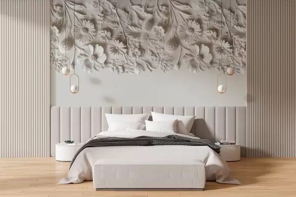 Fototapet Imitație de flori basorelief pe partea de sus în culoarea laptelui Nr. w03398v1