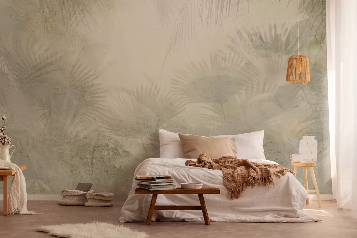 Fototapet Tapet retro tropical texturat în tonuri de bej Nr. w03399