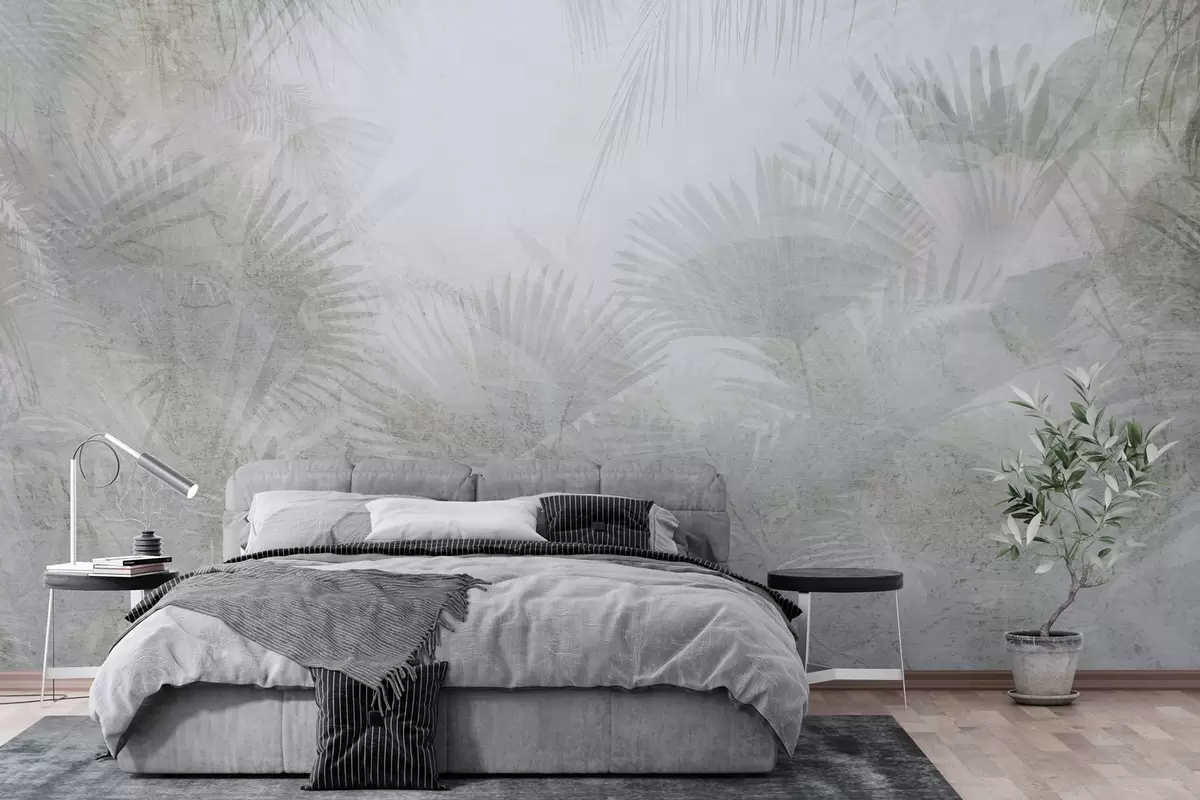 Fototapet Tapet retro tropical texturat în tonuri de gri Nr. w03399v1