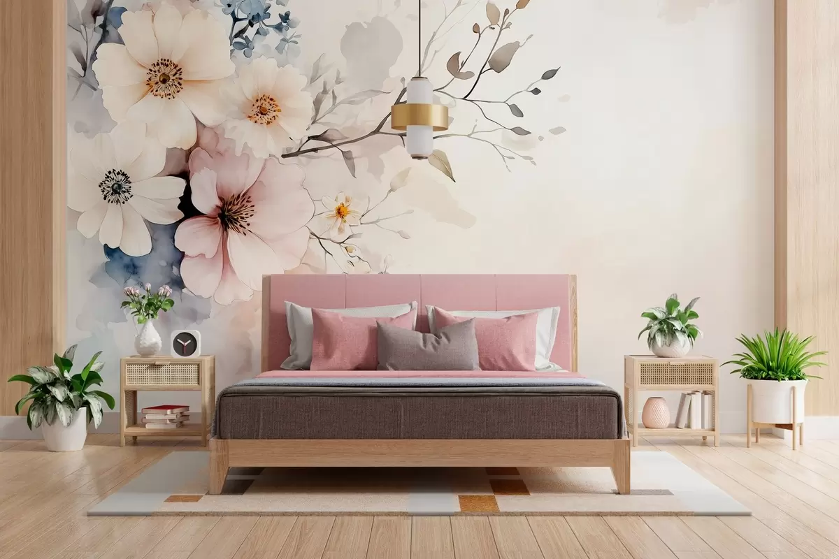 Fototapet flori delicate și o ramură în stil acuarelă Nr. w03400