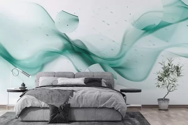 Fototapet Abstracție de valuri geometrice, stil neclar, gradient, culori acvamarin Nr. w03404v2