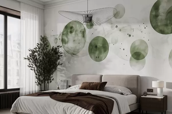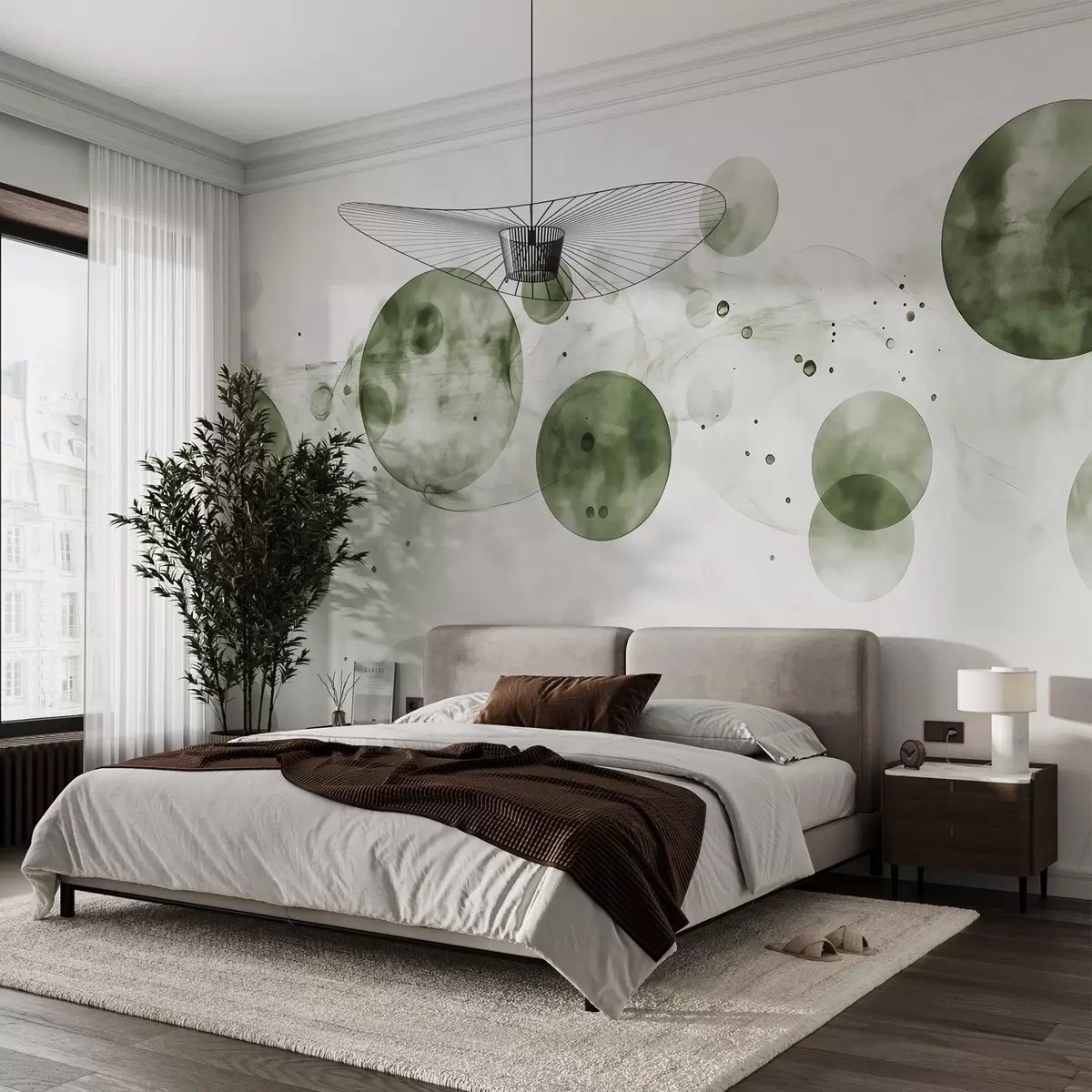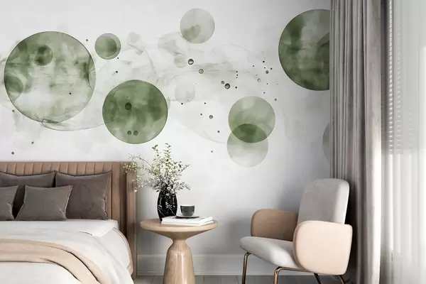 Fototapet Cercuri în stil acuarelă, abstracție, eteric, artă fluidă, culori verzi Nr. w03405v1