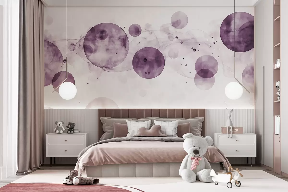 Fototapet Cercuri în stil acuarelă, abstracție, eteric, artă fluidă, culori violet Nr. w03405v2