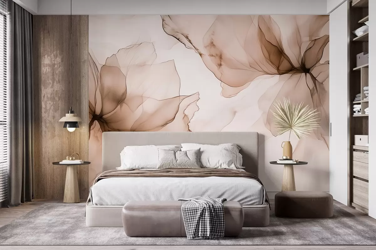 Fototapet Flori în stil fluid, abstracție florală, acuarelă, paletă de culori bej Nr. w03406v3