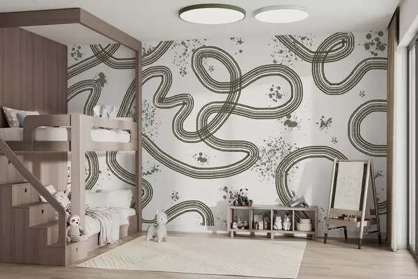 Fototapet Desen line art, stropi de vopsea, minimalism, culoare măslinie Nr. w03408