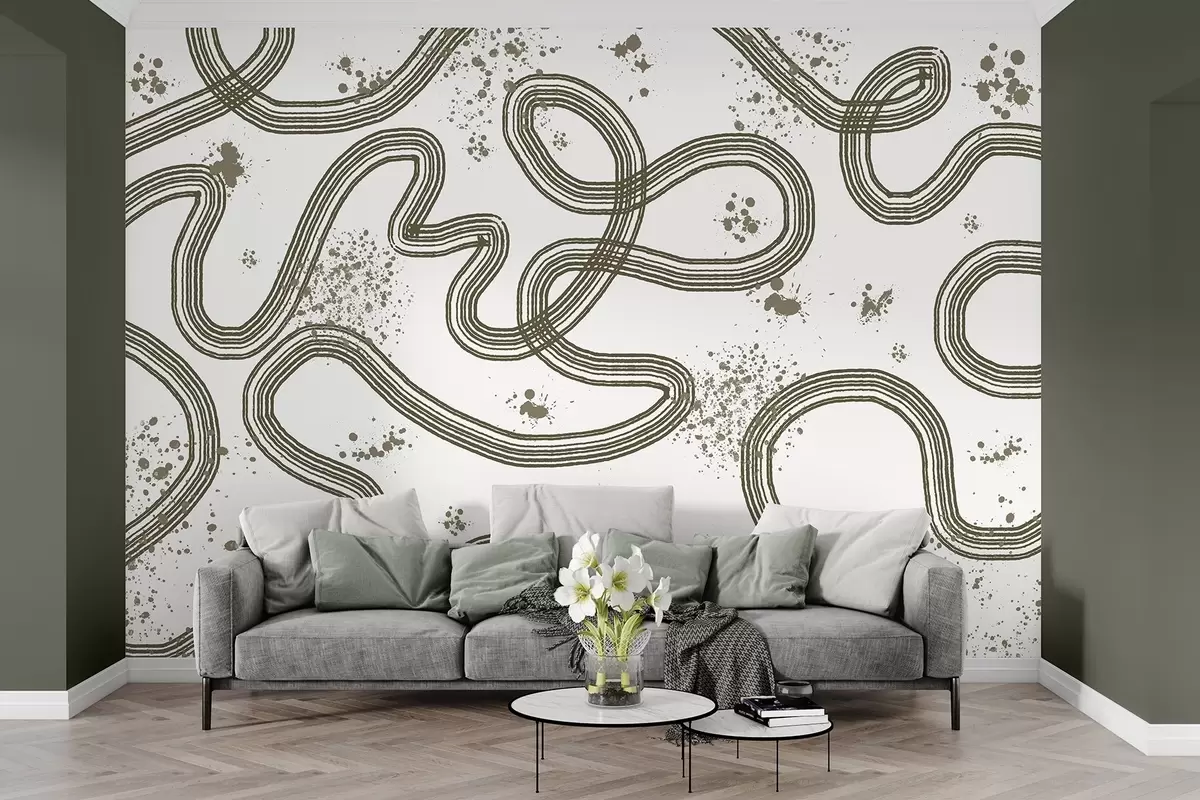 Fototapet Desen line art, stropi de vopsea, minimalism, culoare măslinie Nr. w03408