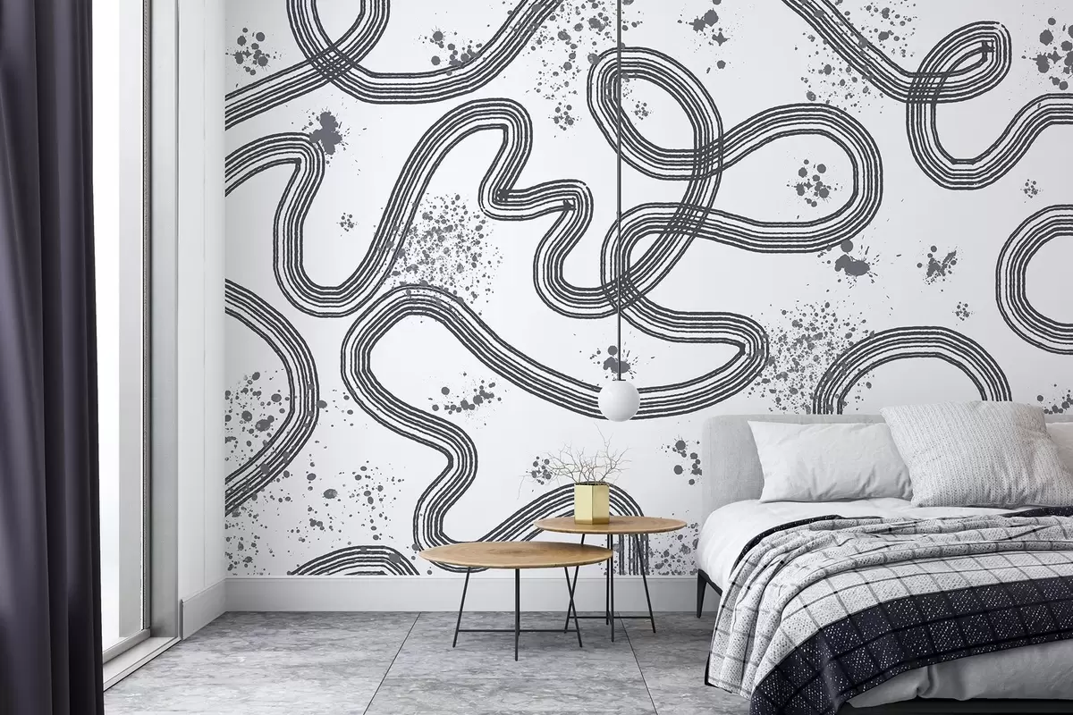 Fototapet Desen line art, stropi de vopsea, minimalism, culoare gri Nr. w03408v2