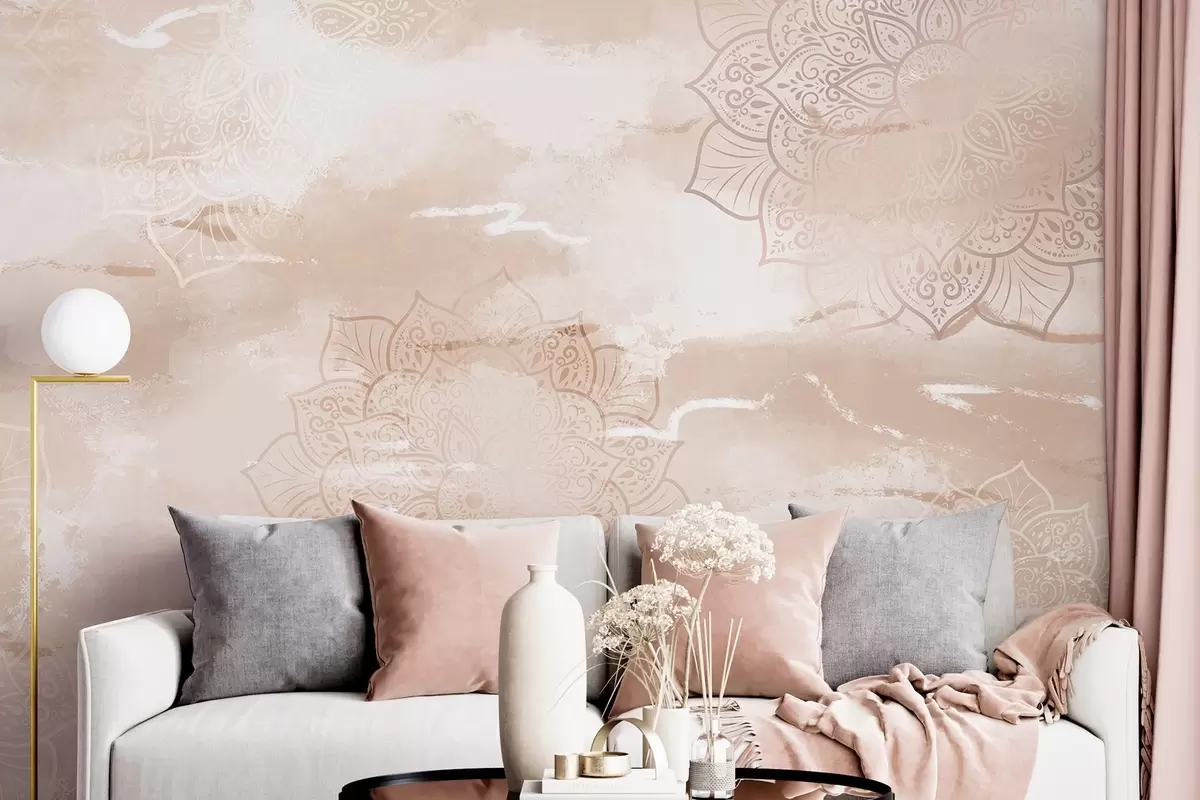 Fototapet Mandale pe fundal pastel, lovituri de perie vii, culori bej Nr. w03409