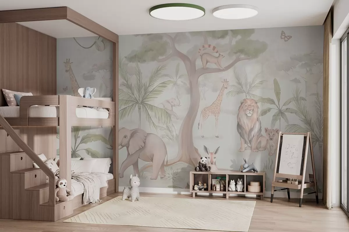 Fototapet Panorama de junglă cu animale în culori deschise Nr. w03444v1