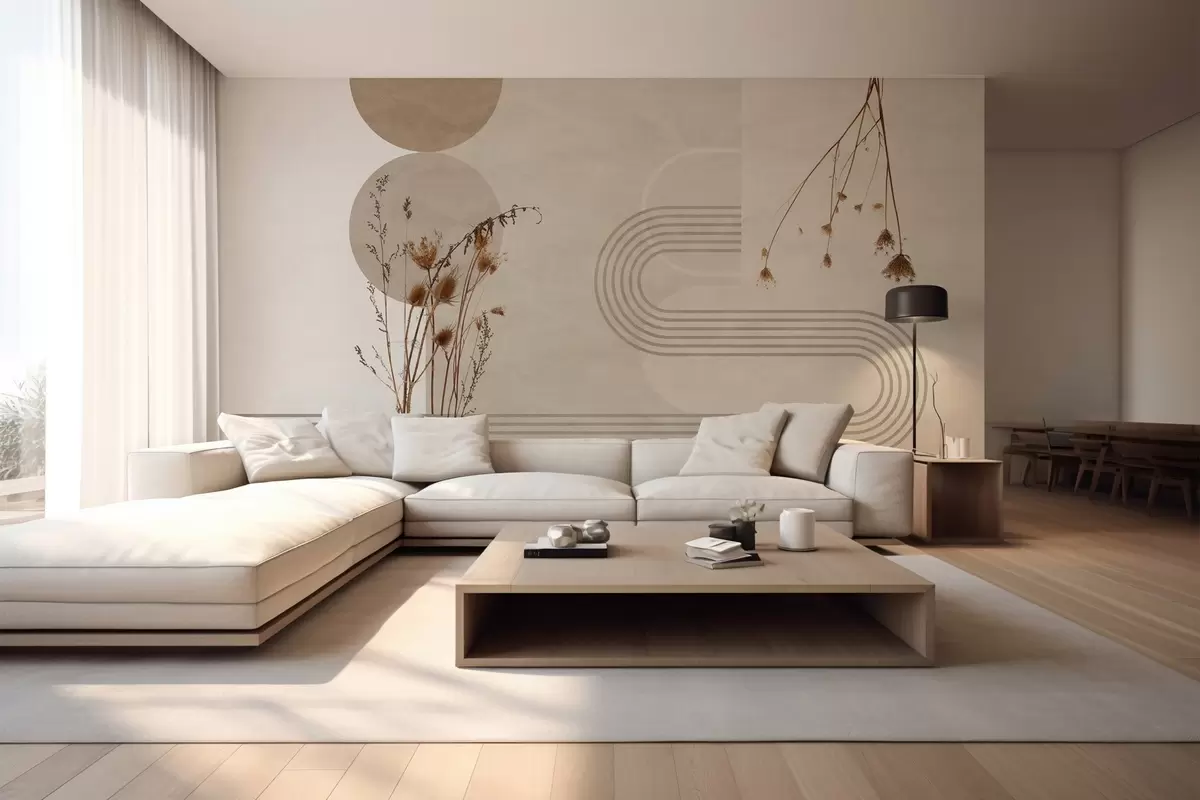 Fototapet geometrie elegantă și flori uscate în tonuri de bej Nr. w03449