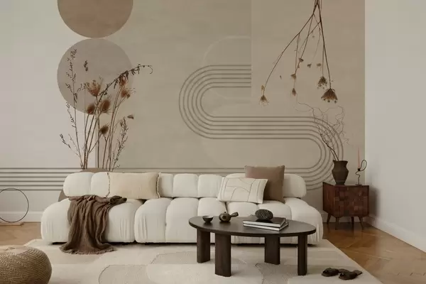 Fototapet geometrie elegantă și flori uscate în tonuri de bej Nr. w03449