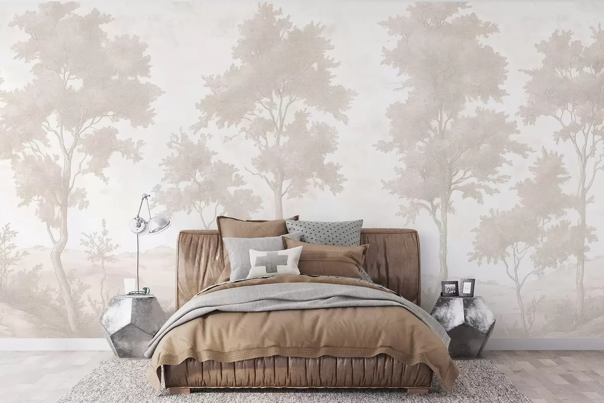 Fototapet Copaci pe deal, desen în stil pastel, culori bej, rustic Nr. w03550
