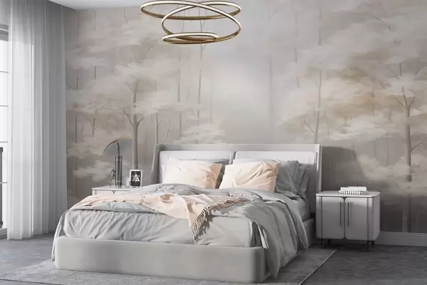 Fototapet Pădure cețoasă cu copaci frumoși și delicați Nr. w03599