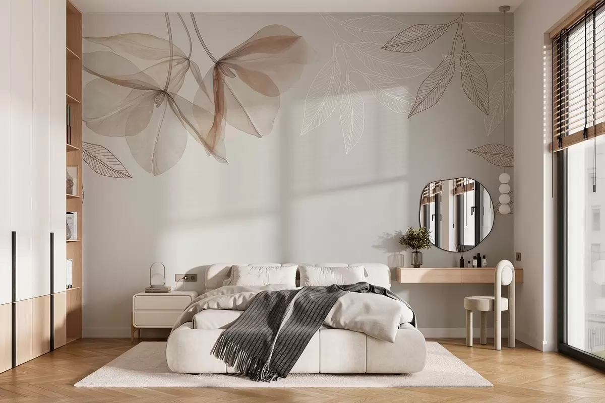 Fototapet flori și frunze delicate translucide în tonuri de moka Nr. w03616v3