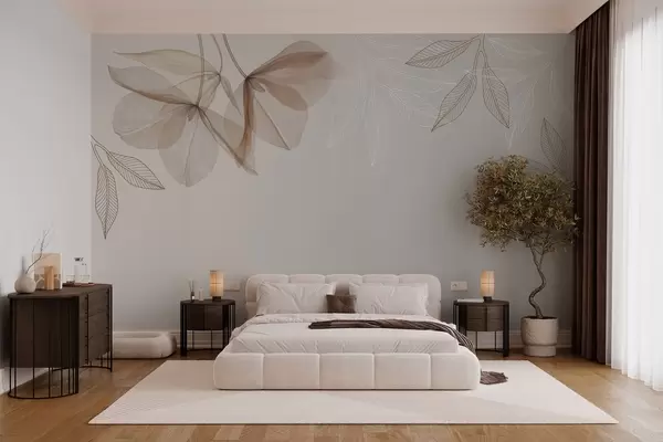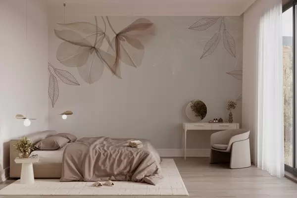 Fototapet flori și frunze delicate translucide în tonuri de moka Nr. w03616v3