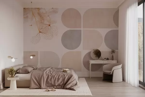 Fototapet geometrie și flori uscate cu nervuri în tonuri de bej Nr. w03617