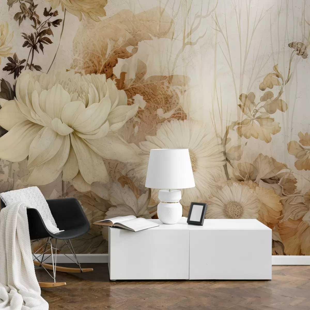 Fototapet Flori de epocă pe un perete vechi crăpat Nr. w03654