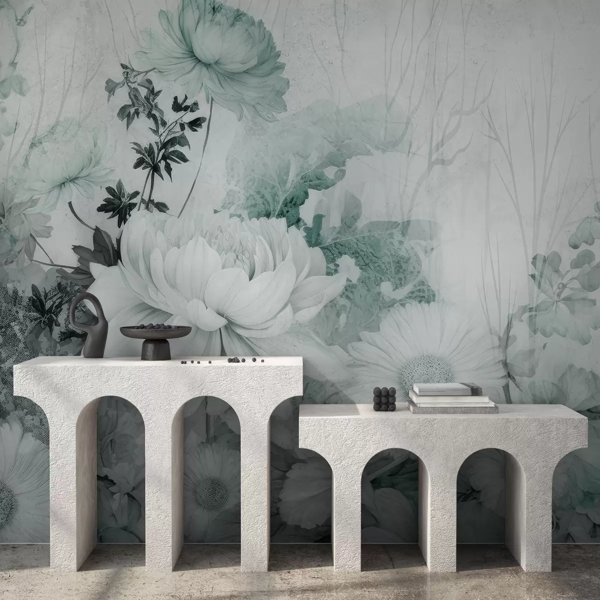 Fototapet Flori de epocă pe un perete vechi crăpat Nr. w03654v2
