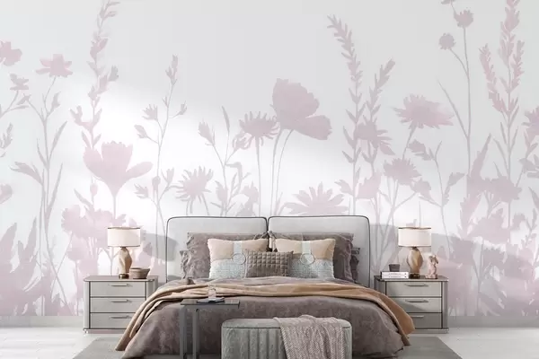 Fototapet Pajiște de vară, rustic, flori, paletă de culori roz Nr. w03670v2