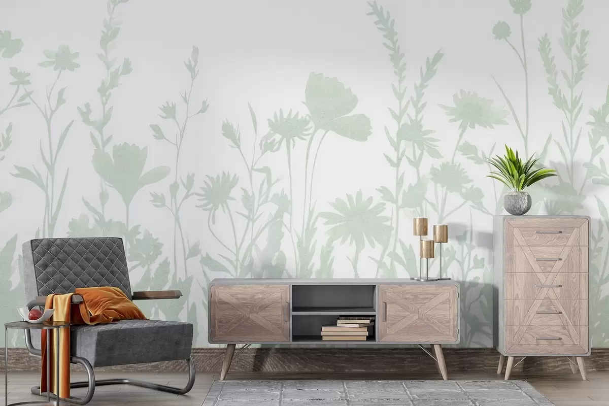 Fototapet Pajiște de vară, rustic, flori, paletă de culori verzi Nr. w03670v3