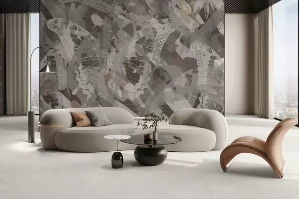 Fototapet abstracție stol de fluturi în tonuri gri și maro Nr. w03725