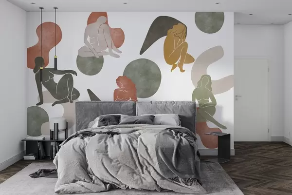 Fototapet Abstracții geometrice cu siluete feminine, stil boho, maro, bej, verde Nr. w03753