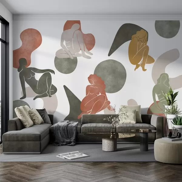 Fototapet Abstracții geometrice cu siluete feminine, stil boho, maro, bej, verde Nr. w03753