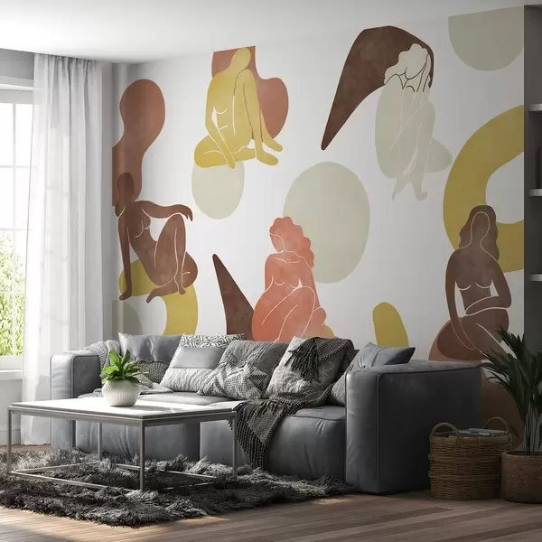 Fototapet Abstracții geometrice cu siluete feminine, stil boho, maro, bej, galben Nr. w03753v2