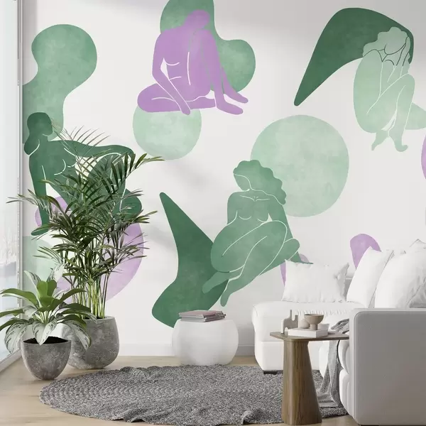 Fototapet Abstracții geometrice cu siluete feminine, stil boho, violet, verde Nr. w03753v4