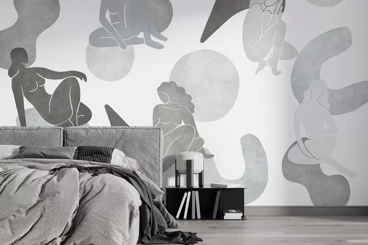 Fototapet Abstracții geometrice cu siluete feminine, stil boho, culori gri Nr. w03753v5