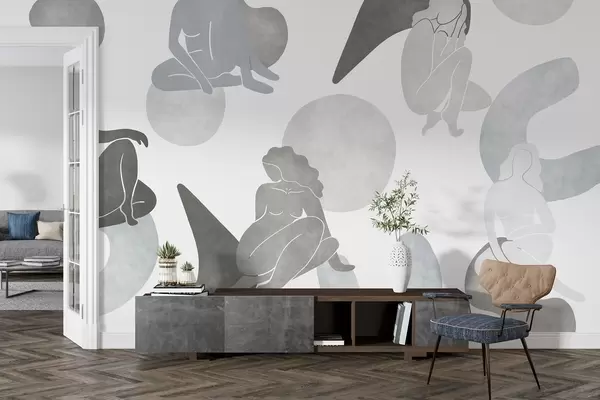 Fototapet Abstracții geometrice cu siluete feminine, stil boho, culori gri Nr. w03753v5