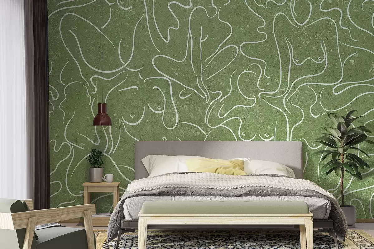 Fototapet Linie de desen siluete anatomice, abstracție, fundal verde Nr. w03756v2