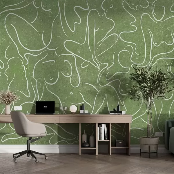 Fototapet Linie de desen siluete anatomice, abstracție, fundal verde Nr. w03756v2