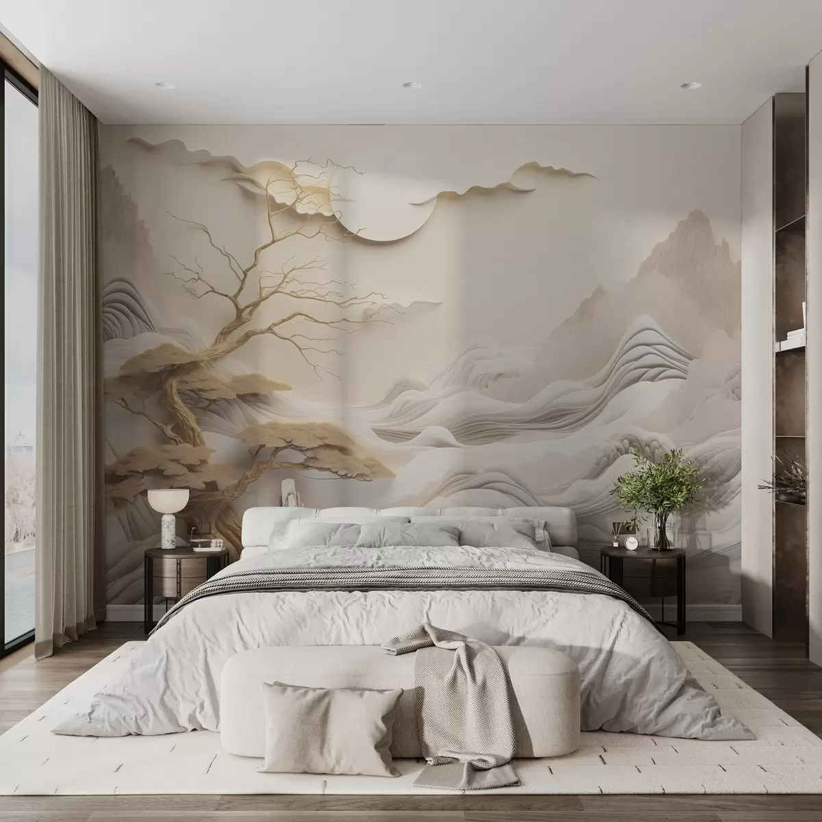 Fototapet Peisaj oriental cu copaci și munți Nr. w03803