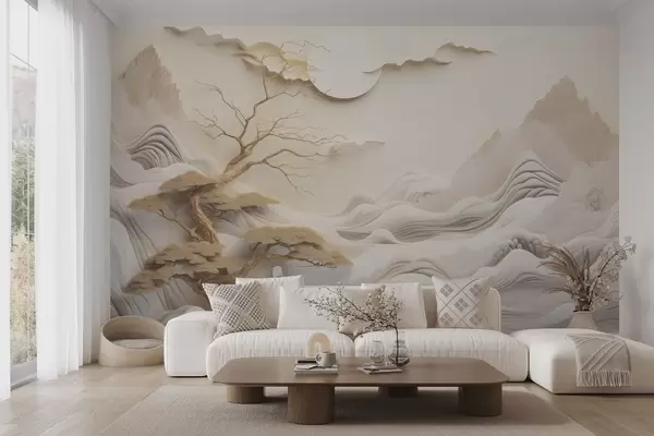Fototapet Peisaj oriental cu copaci și munți Nr. w03803