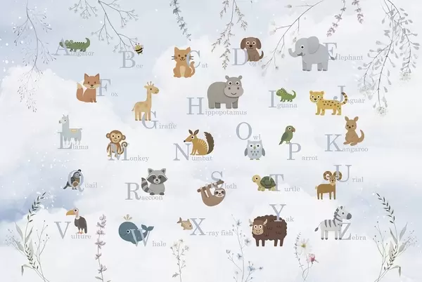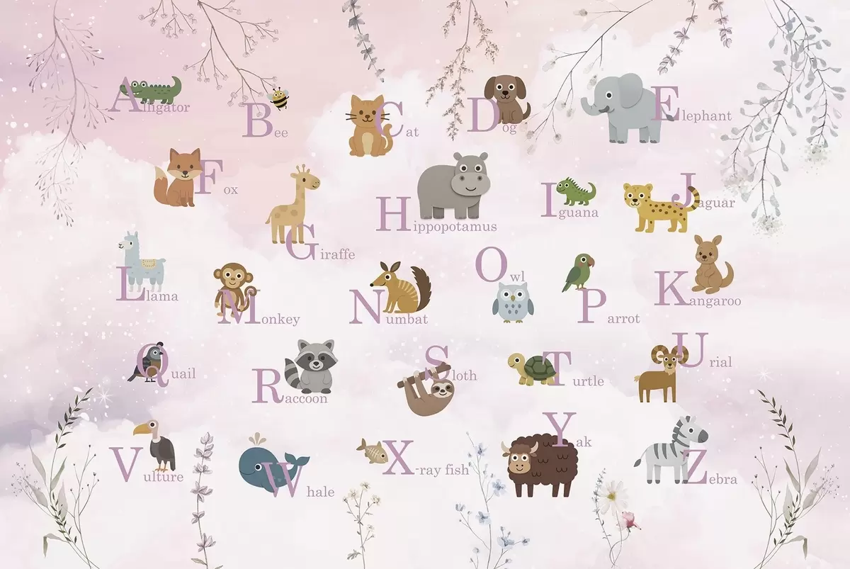 Fototapet Alfabet cu litere roz, plante și cer Nr. w03809