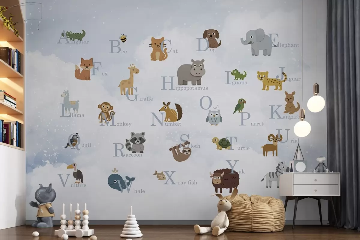 Fototapet Alfabet cu litere albastre pe fundalul cerului Nr. w03810v1