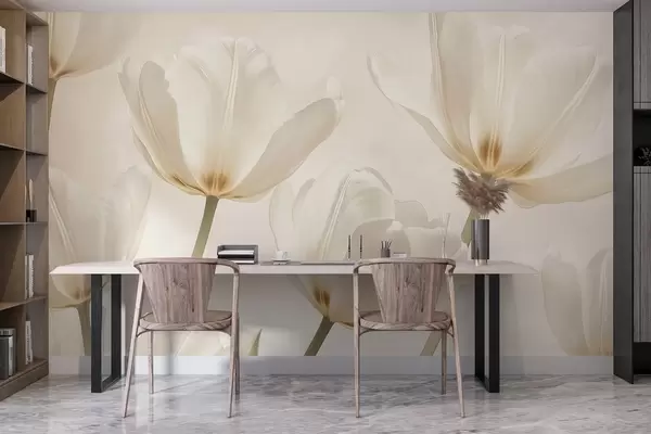 Fototapet Lalele frumoase, florale, culori bej, realism Nr. w03877