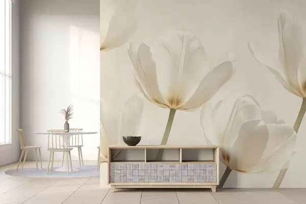Fototapet Lalele frumoase, florale, culori bej, realism Nr. w03877