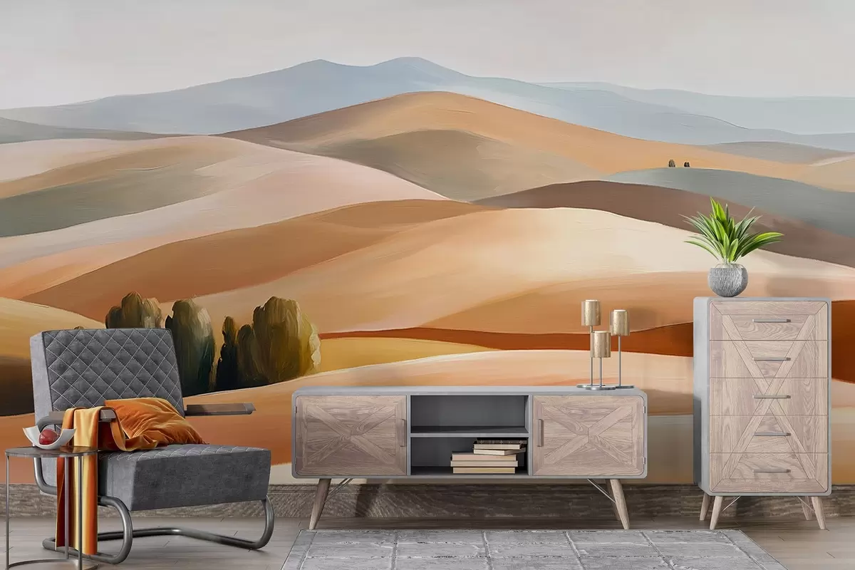 Fototapet Peisaje cu copaci, Toscana, culori naturale, stil ulei Nr. w03880