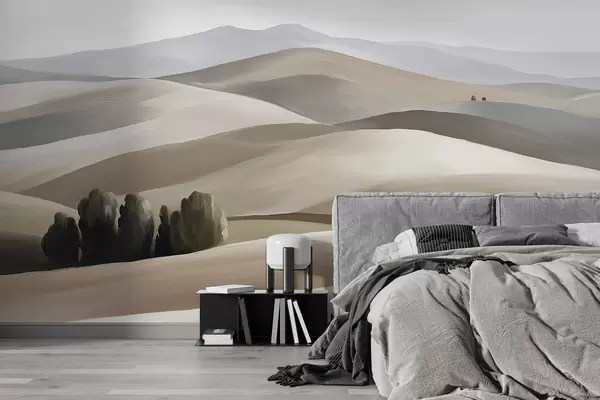 Fototapet Peisaje cu copaci, Toscana, culori bej și gri, stil ulei Nr. w03880v1