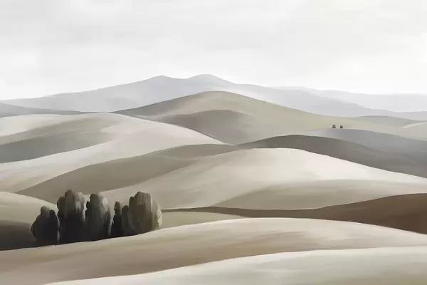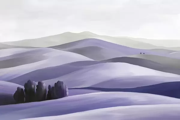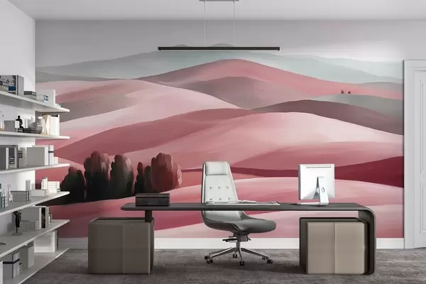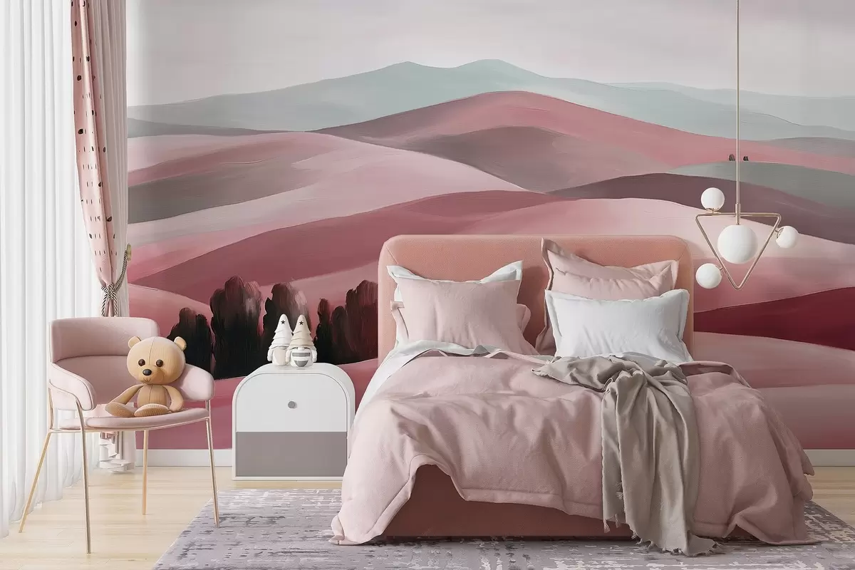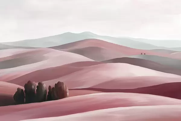 Fototapet Peisaje cu copaci, Toscana, culori roz, stil ulei Nr. w03880v2