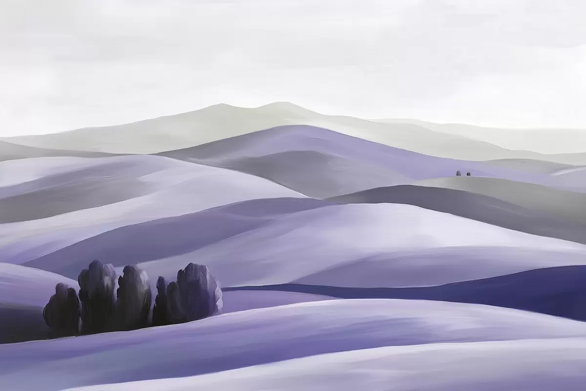 Fototapet Peisaje cu copaci, Toscana, culori violet, stil ulei Nr. w03880v3