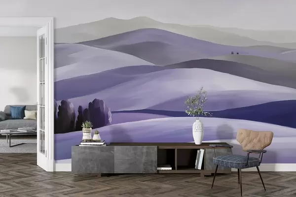 Fototapet Peisaje cu copaci, Toscana, culori violet, stil ulei Nr. w03880v3