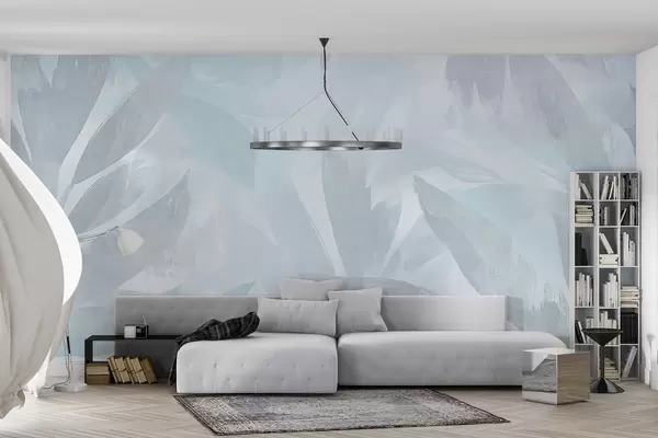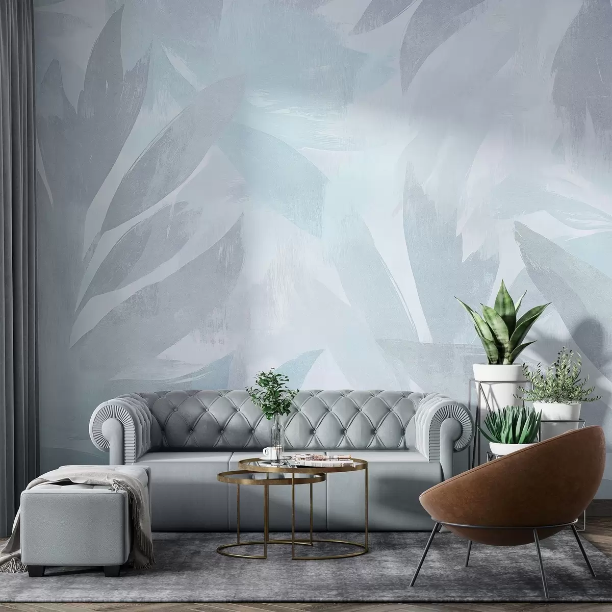 Fototapet Frunze tropicale, florale, palmieri, stil pastel, culori albastre Nr. w03881v2