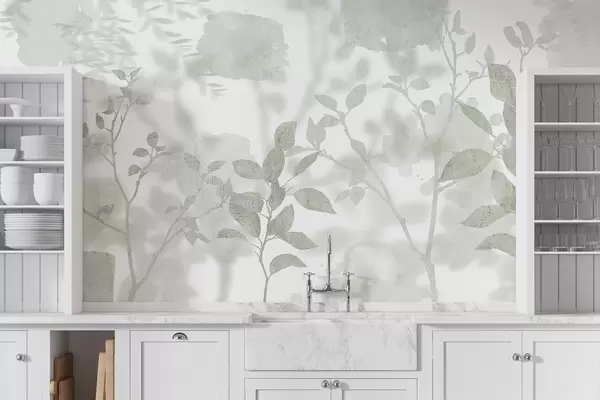 Fototapet Arbori siluete, ramuri, natura, acuarelă, culori verzi Nr. w03911v1