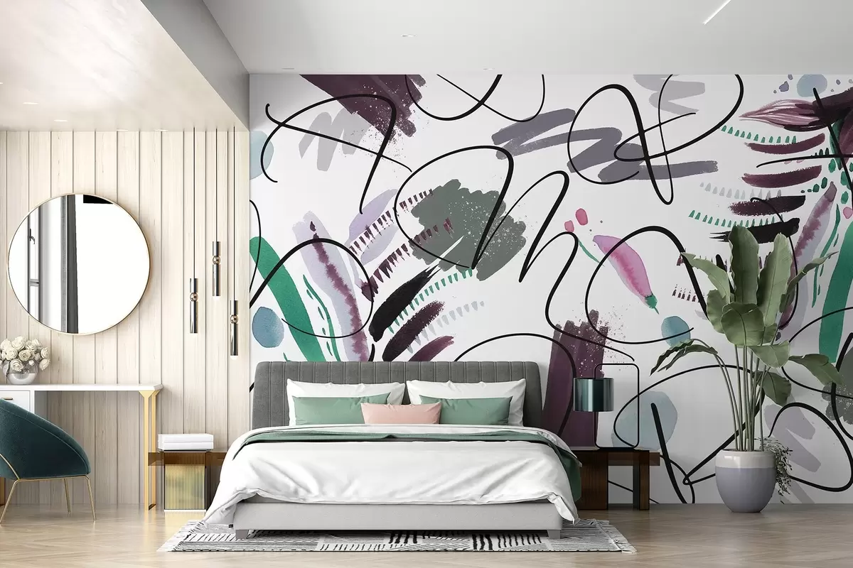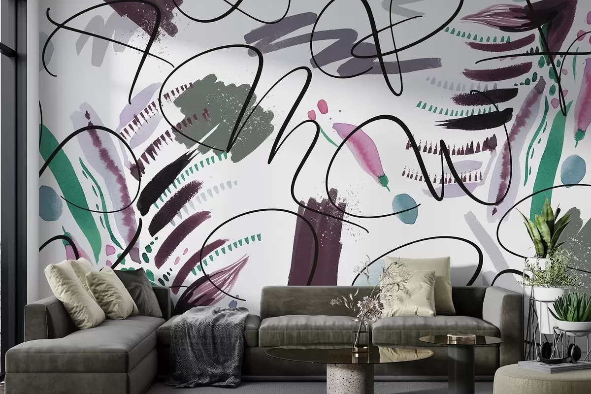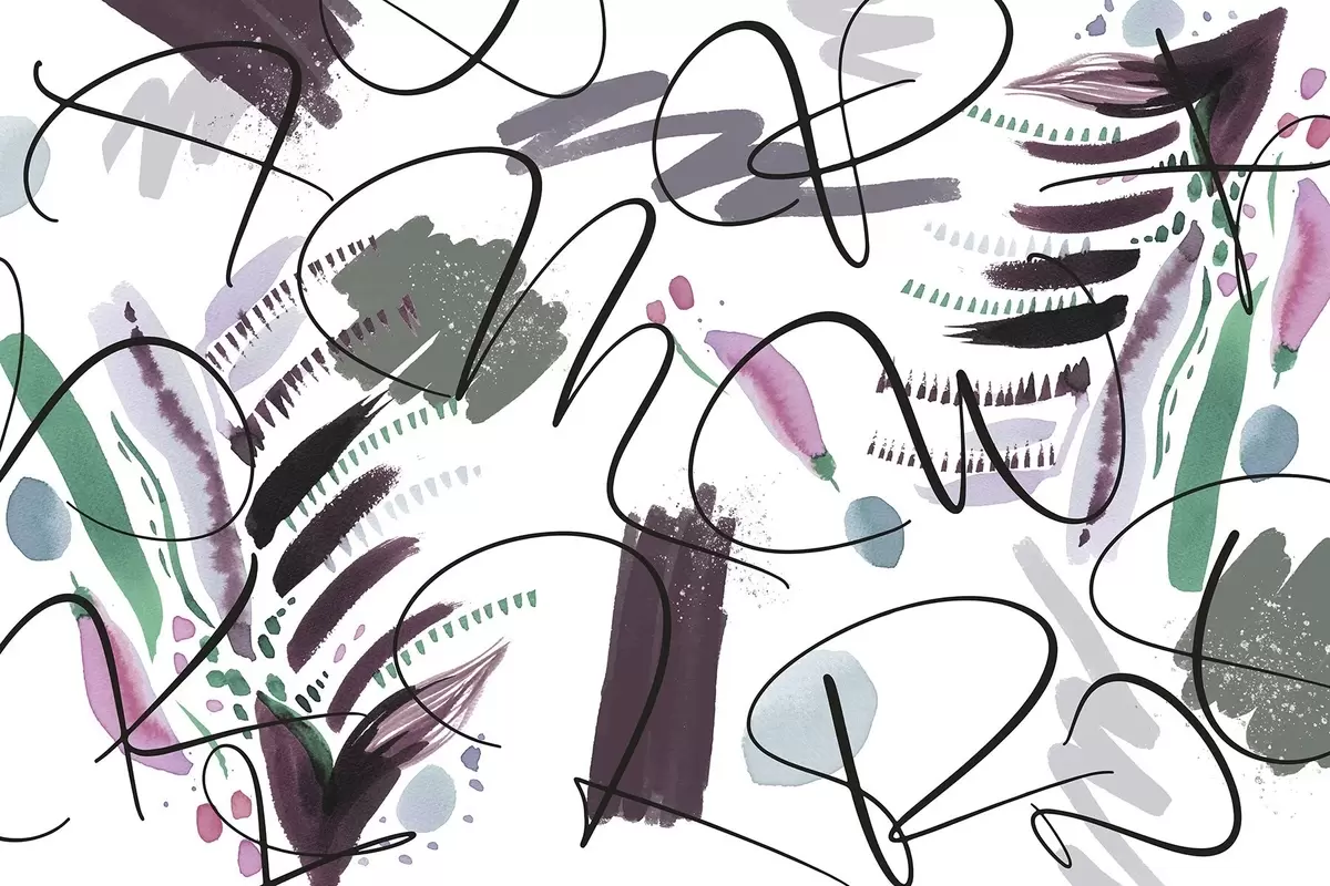 Fototapet Litere cu cerneală, caligrafie, lovituri de pensulă, culori pastelate, abstracție Nr. w03912v1