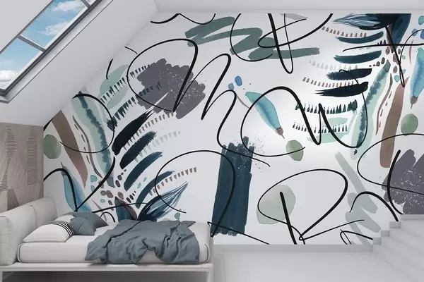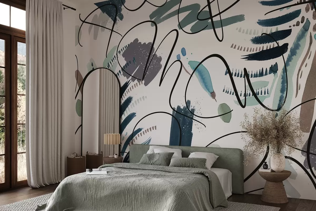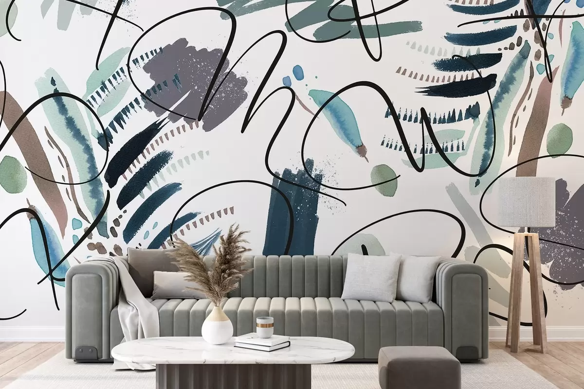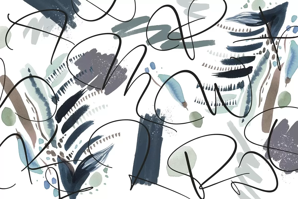 Fototapet Litere cu cerneală, caligrafie, lovituri de perie, culori albastre, abstracție Nr. w03912v2