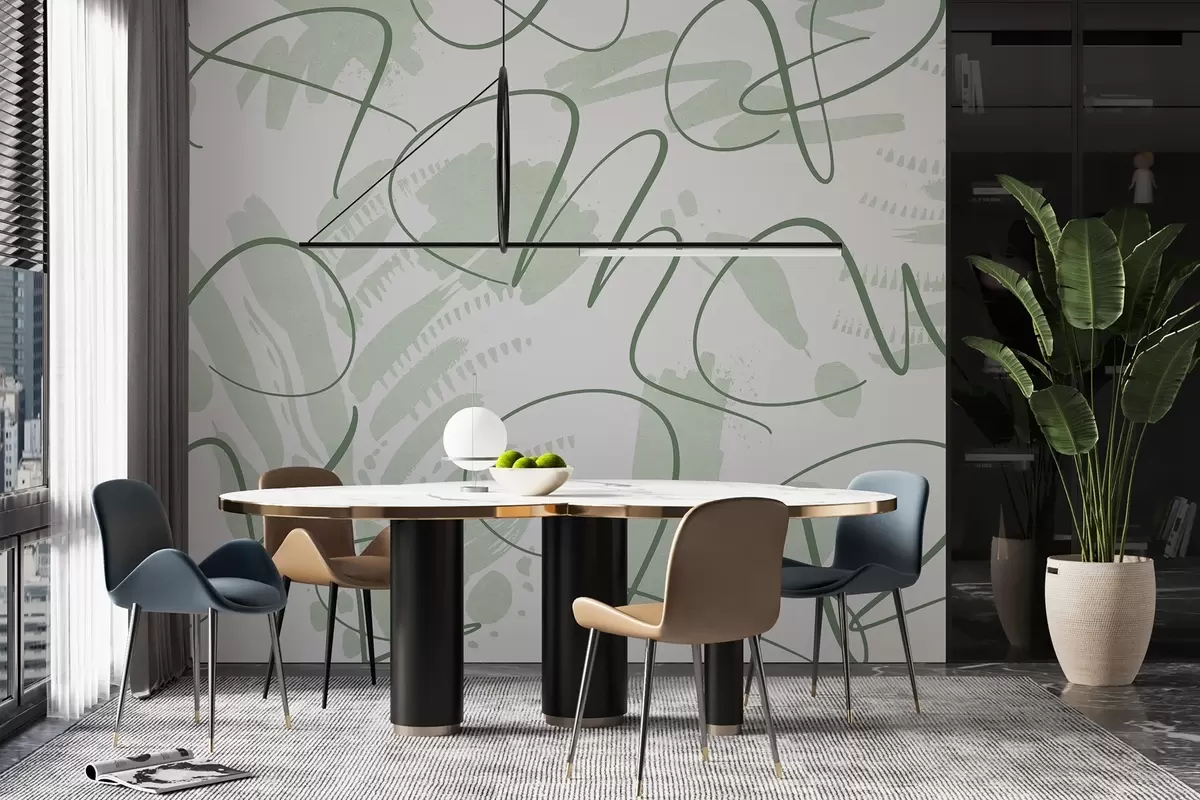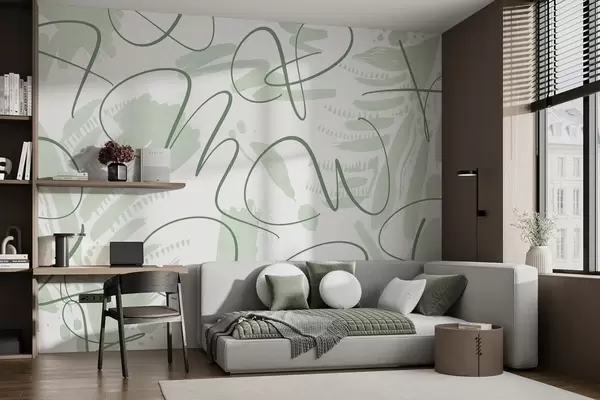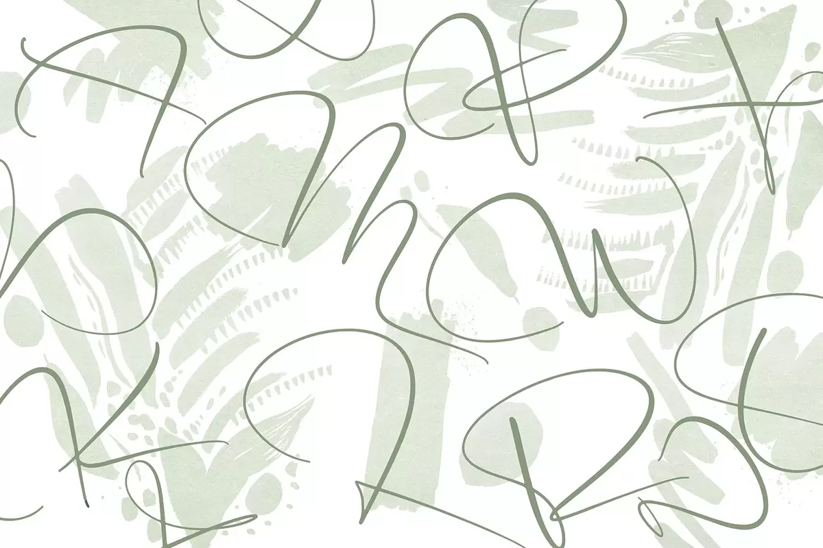 Fototapet Abstracție caligrafică cu litere, lovituri de pensulă, culoare verde Nr. w03913v3