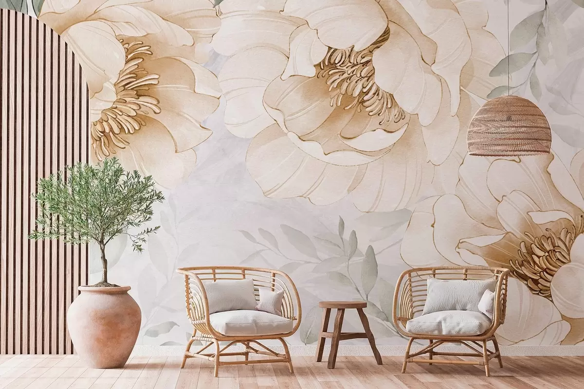 Fototapet Peonii galbene imitație acuarelă Nr. w03932v1